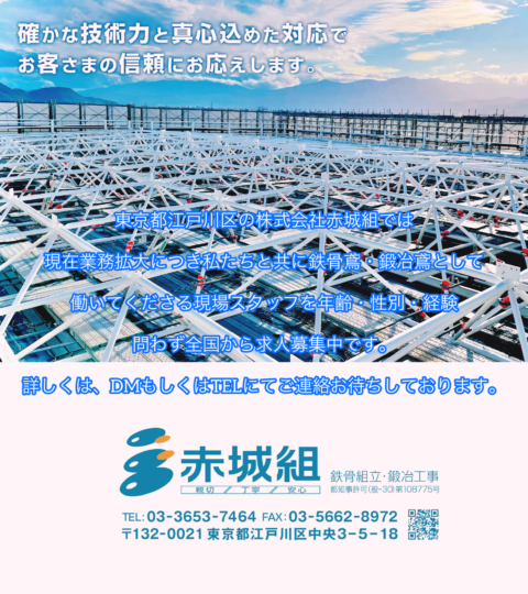 東京都江戸川区の鉄骨会社 株式会社赤城組 求人募集!