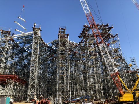 鉄骨建て方工事とは、現場で鉄骨などの構造部材を組み立てる工事のことです。