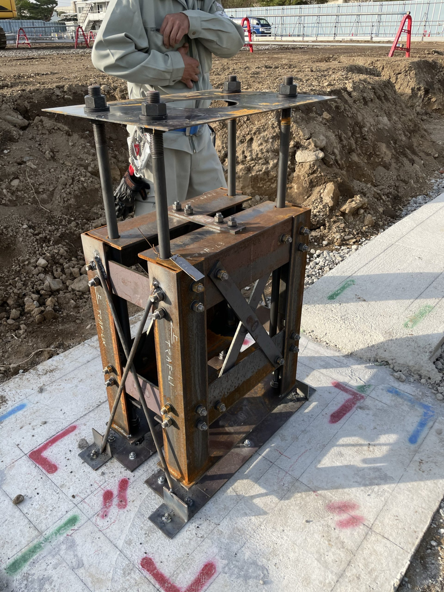 某体育館のアンカーセットの施工状況になります。弊社では建て方前の失敗の許されないアンカーセットも丁寧に且つ迅速に施工致します。