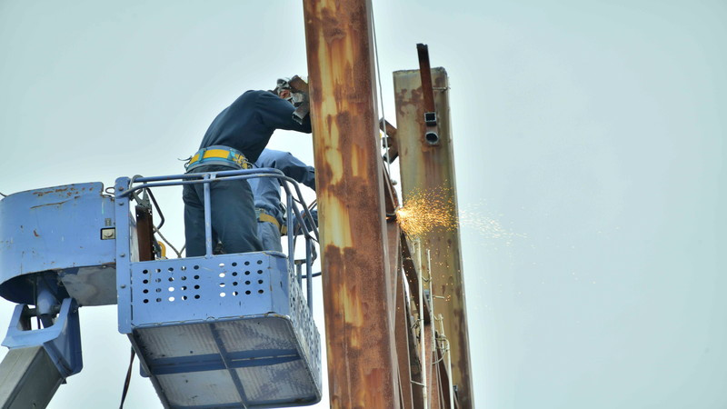 高所作業が中心で、精密な技術と体力、協同作業の能力が求められる仕事になります。